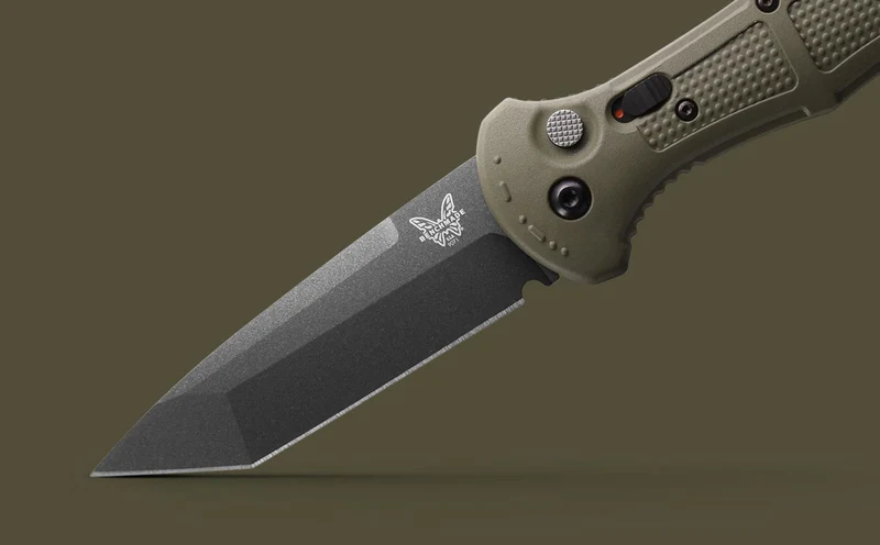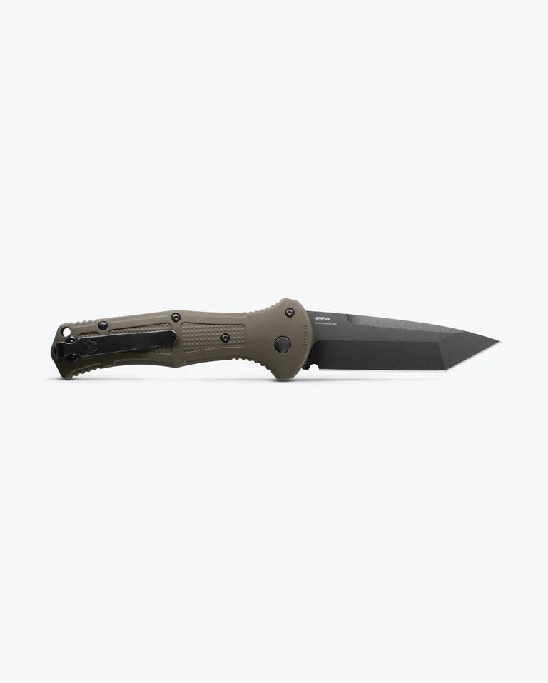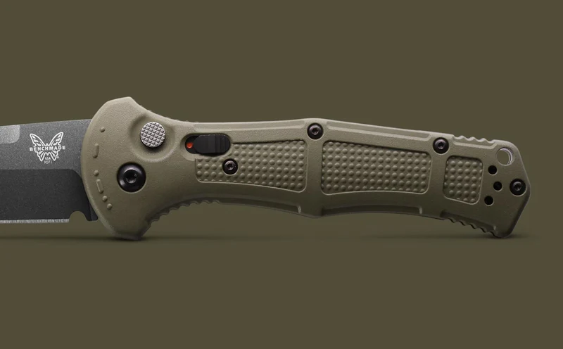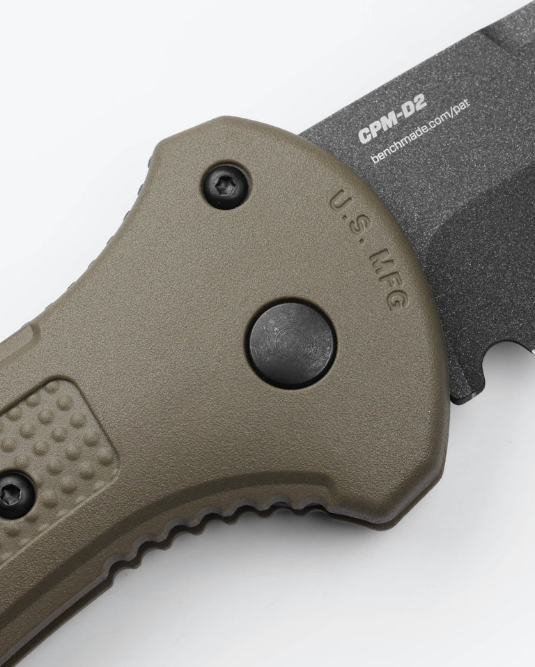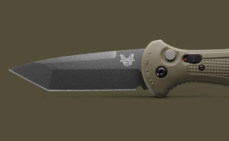הוסף לעגלה והזמן את BENCHMADE 9071BK-1 Claymore Tanto Auto עם להב D2, מנגנון אוטומטי וידית Ranger Green.
