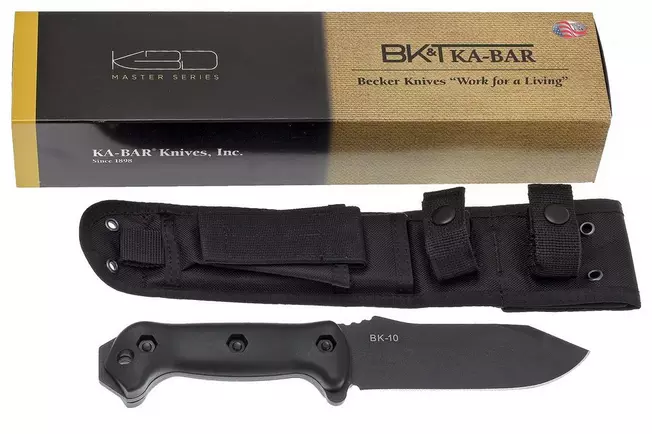 ה-BK10 נמכרת עם נרתיק Heavy-Duty Polyester תואם MOLLE, ובאתר KA-BAR הנרתיק מופיע כ-BK10S
