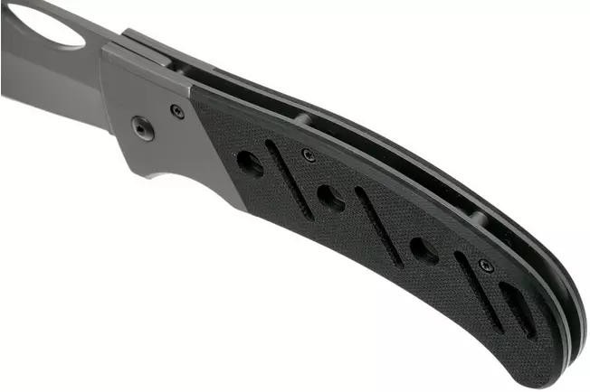 הידית עשויה G10 (חומר קשיח ועמיד עם אחיזה טובה). בנוסף, הדגם כולל Pocket Clip שמוגדר כ-Tip-Down לנשיאה יומיומית בכיס.