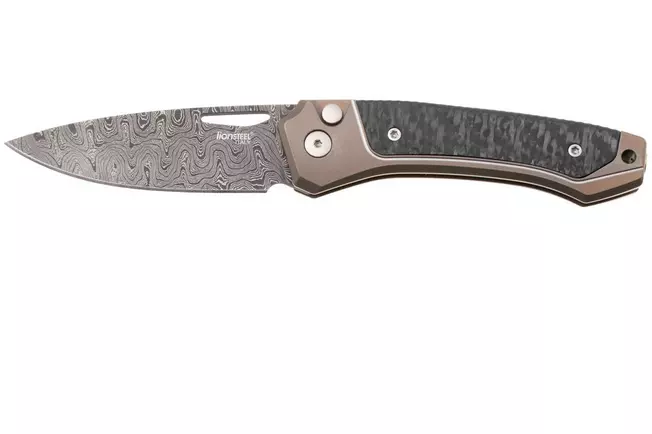 הזמינו עכשיו את LionSteel TW D BR Twain Damascus ותיהנו מסכין מתקפלת יוקרתית עם דמסקוס Chad Nichols, Button Lock ושלדת טיטניום ברונזה עם Carbon Fiber.