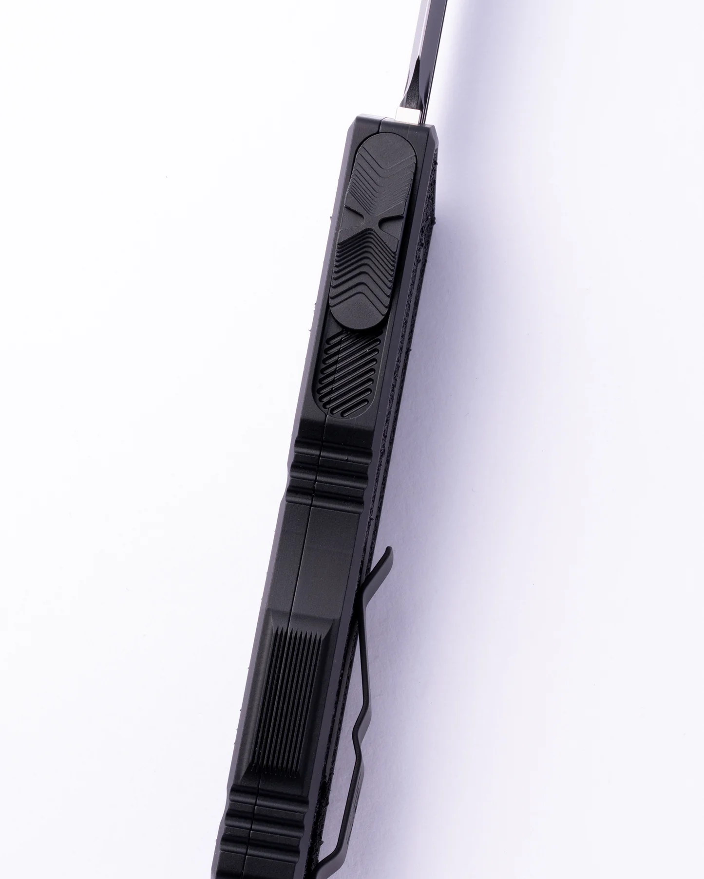הלהב D/E Dagger (בגרסת Standard/Plain) עשוי Böhler M390MK — פלדה “סופר” עם שמירת חוד ועמידות שחיקה גבוהות. הגימור Black Tactical מפחית השתקפויות ושומר על מראה נקי לאורך זמן. מנגנון Double-Action OTF נשלט ב-Thumb Slide: הלהב יוצא וחוזר באותה מסילה, במהירות ובביטחון. התוצאה: OTF גדול אך נשלט, שמרגיש מהודק ויציב בכל קליק — בדיוק מה שמצופה מ-Microtech.