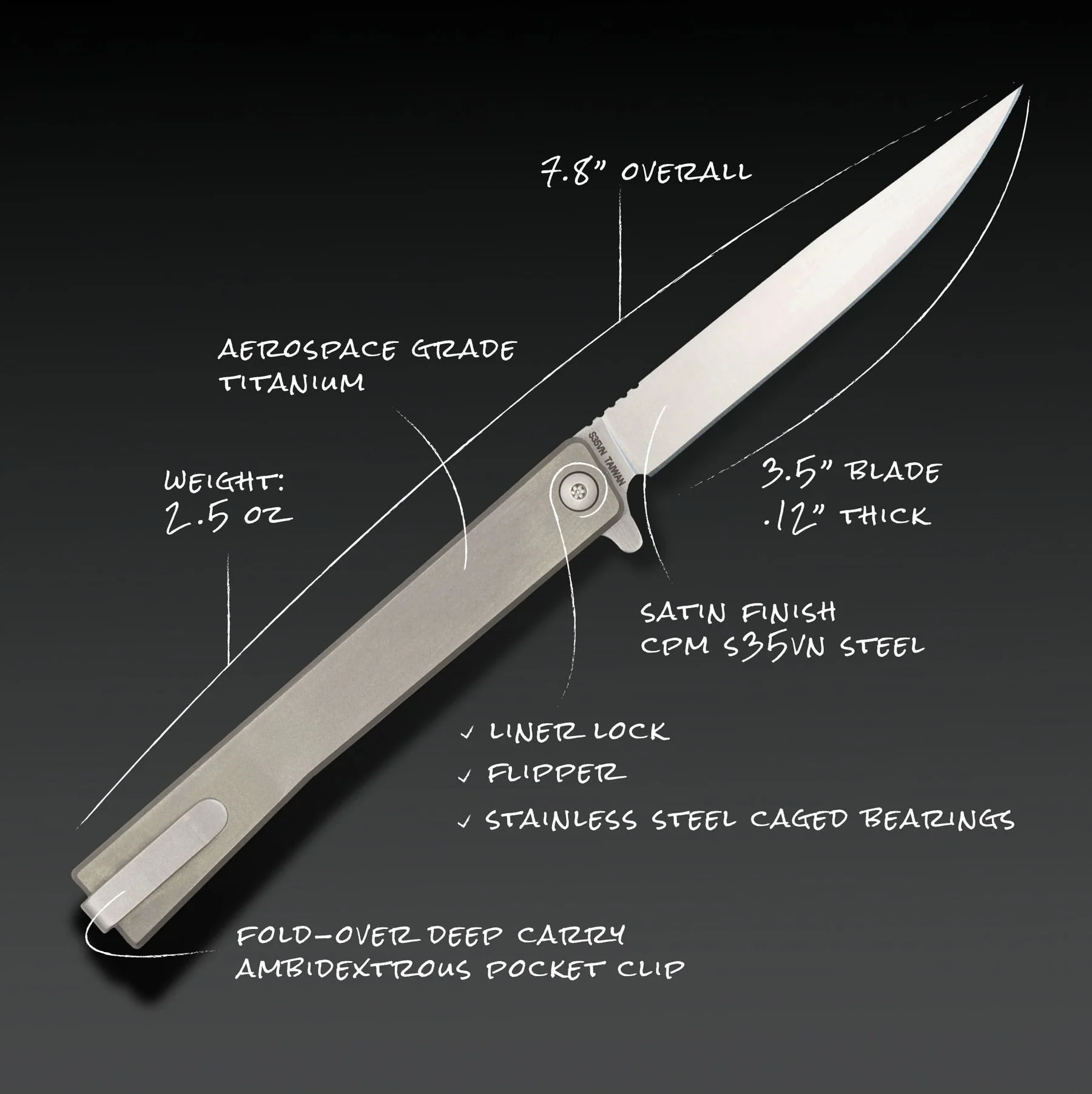 הוסיפו לעגלת הקניות והשלימו הזמנה של OCASO 10CTS Solstice – להב CPM S35VN 3.5″ בגימור Satin, ידית Titanium, פליפר עם מיסבים וקליפ Fold-Over Deep-Carry לנשיאה אלגנטית ודיסקרטית.