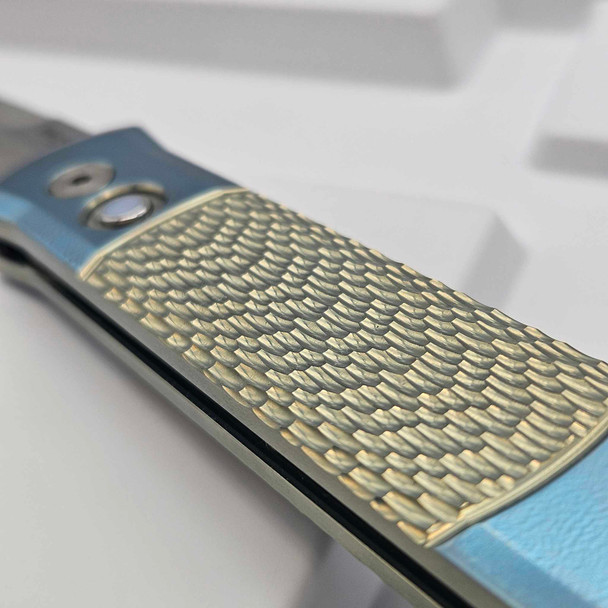 הידית עשויה 6061-T6 Aluminum בצבע שחור, עם פרופיל דק ונקי שמתאים לנשיאה דיסקרטית. האלמנט שמייחד את מהדורת C.1 הוא כפתור הפתיחה עם Mother of Pearl, פרט קטן אך בולט שמדגיש שמדובר במהדורה מיוחדת ולא בדגם סטנדרטי.