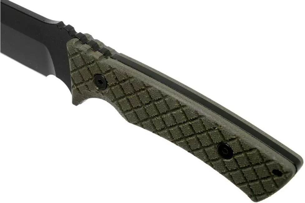 בגרסת BKGR אתם מקבלים CE Canvas Micarta ירוקה—חומר ידיות אהוב מאוד בעולם השטח בגלל האחיזה והתחושה המחוספסת-בדיוק-במקום, במיוחד בידיים לחות/עם כפפות.